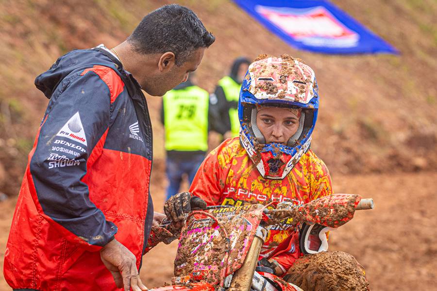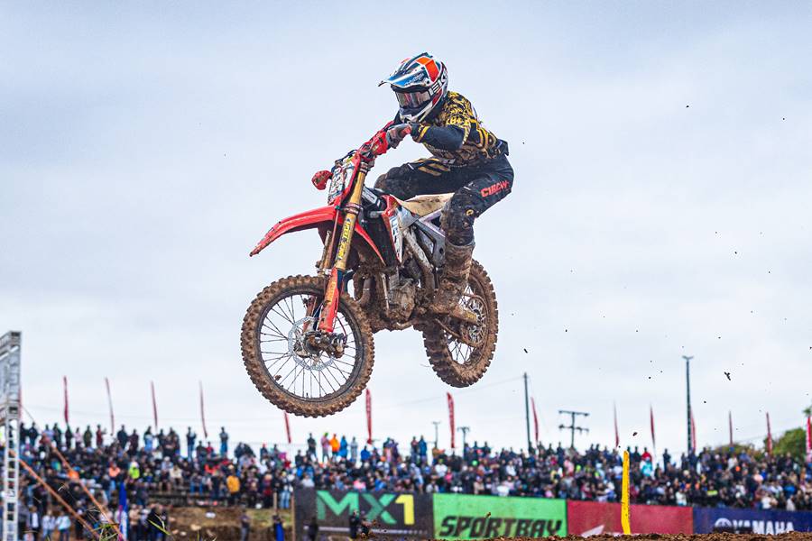 Temporada 2025 iniciada no MX1GP Brasil, o Brasileiro de Motocross, com a Honda Racing como destaque. Neste domingo (6/4), no motódromo de Ponta Grossa (PR), os pilotos do time superaram a lama e as condições traiçoeiras do circuito para garantir uma dobradinha na classe MX2, com Bernardo Tibúrcio vencendo as duas baterias, sempre à frente de Vitor Borba, com as motos Honda CRF 250R. Na MX1, Stephen Rubini brigou pela vitória e somou dois importantes segundos lugares com a CRF 450R.